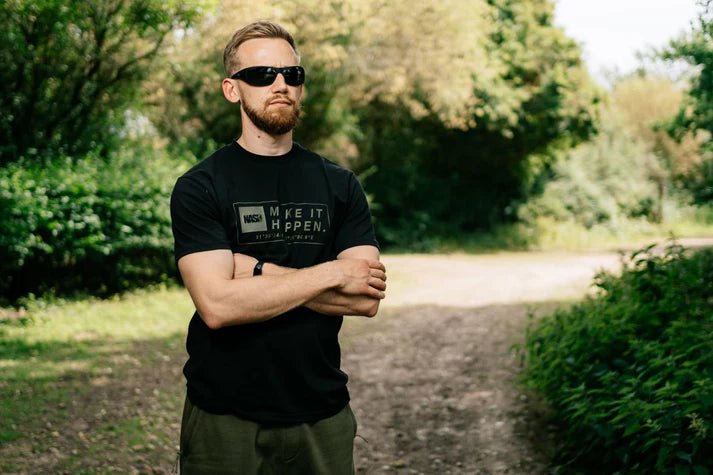 Brillen zonnebrillen van het merk Nash, model Make It Happen Flexi Wrap, op Kleur gerookt grijs, speciaal voor het karpervissen.