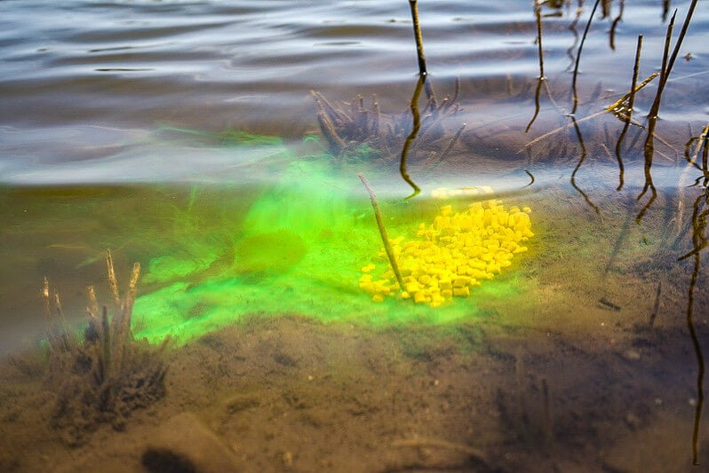 Potje vloeistof fluorescerende merkcrème Pro Elite Baits smaak Krill Krab op Kleur groen 150 milliliter, speciaal voor het karpervissen.