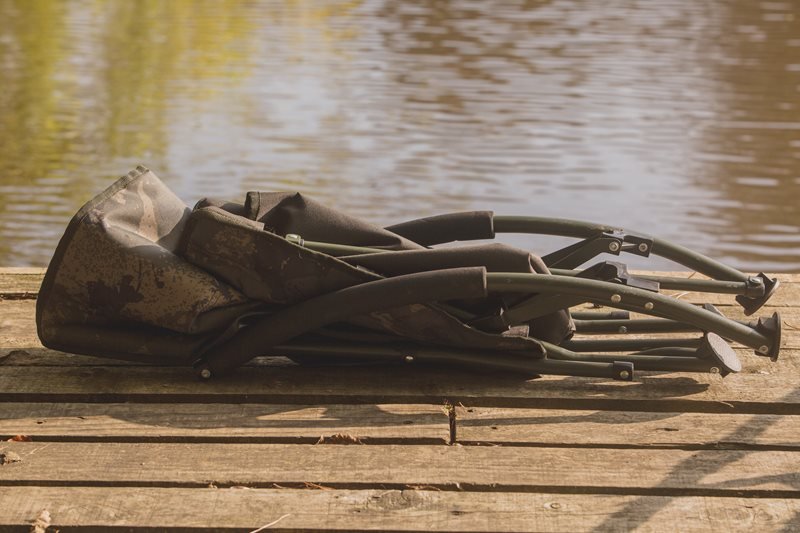 Merk stoel Solar, model Undercover, opKleur camouflage, perfect voor het karpervissen.