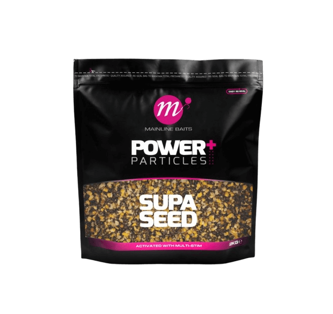 Zaad Mix van het merk Mainline assortiment Power+ met een voorproefje van Supa Seedspeciaal voor karpervissen.