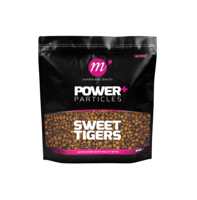 Zaad Mix van het merk Mainline assortiment Power+ met een voorproefje van Sweet Tigersspeciaal voor karpervissen.