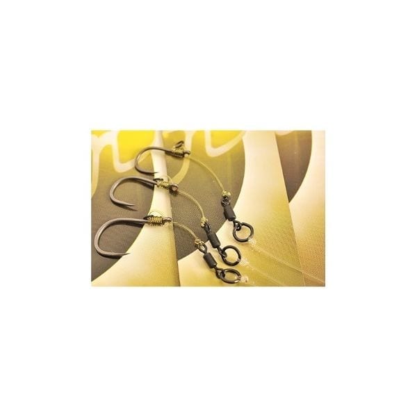 Gemonteerde merkhaken Korda van het assortiment Scharnier Rigrange, speciaal voor het karpervissen. Deze rig heeft een chod die de vrije beweging van de haak mogelijk maakt voor een natuurlijke schommeling van ons drijvende aas. Verkrijgbaar in de nummers 4, 6 en 8.