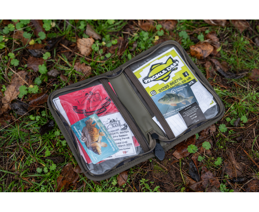 Merk Portfolio Avid Carp model RVS op Kleur kaki, om je visvergunning in op te bergen. Ideaal om al je documenten en geld in op te bergen en veilig te bewaren.