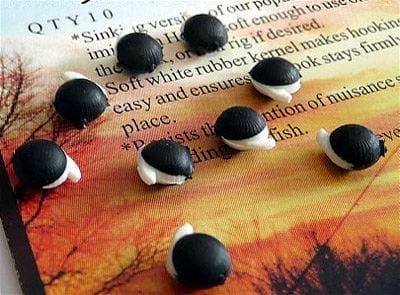 Tip Gebruik een enkele kraal op een kleine haak, bijvoorbeeld maat 18, of meerdere kralen kunnen op een hair worden geregen door een aasnaald door de zachte kraal te halen. Het drijfvermogen van de kralen zal het gewicht van de haak gedeeltelijk compenseren. Als richtlijn geldt dat 10 korrels het gewicht van een maat 10 monsterhaak compenseren.