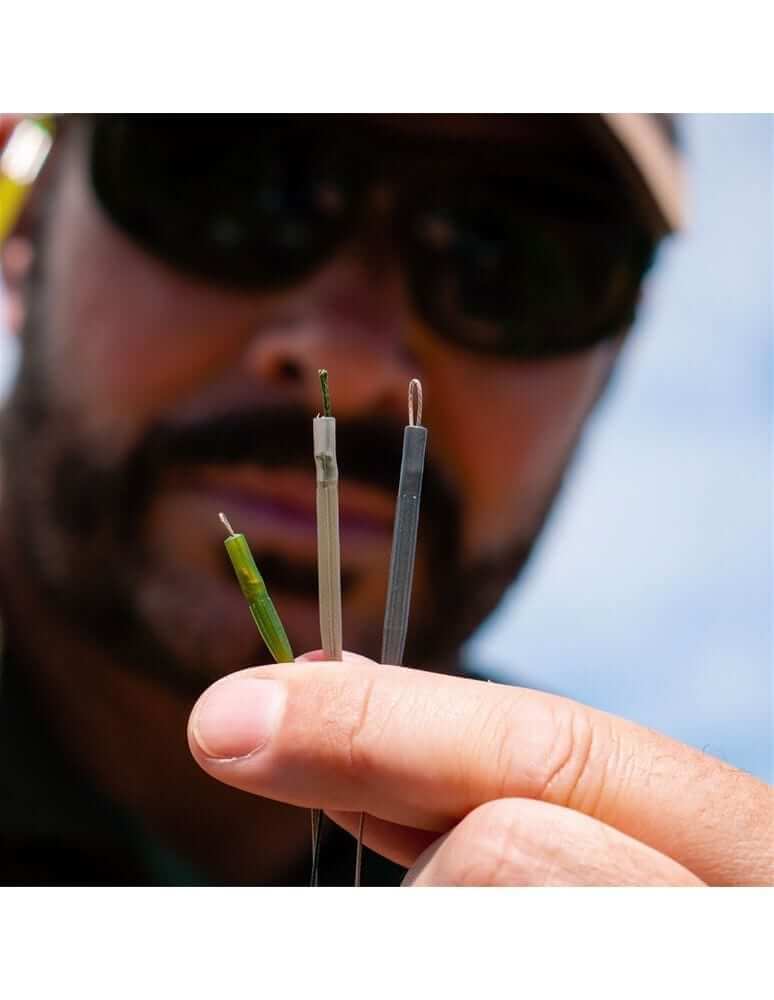 Anti klit buis van 25 mm op Kleur groen van het merk Ridge Monkey Perfect voor je carpfishing rig, het is een doorschijnende halfstijve holle sleeve ontworpen om je rig zachtjes weg te duwen van het lood tijdens de worp en bij impact met de bodem van het meer, wat zorgt voor een perfecte presentatie.