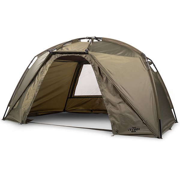 Bivvy van het merk Nash model Titan huid in zijn versie standaarduitvoering met ontwerp in Kleur groenspeciaal voor karpervissen.