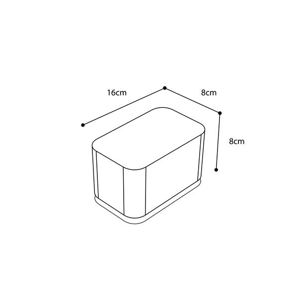 - 8 (hoogte) x 16 (breedte) x 8 cm (diepte)