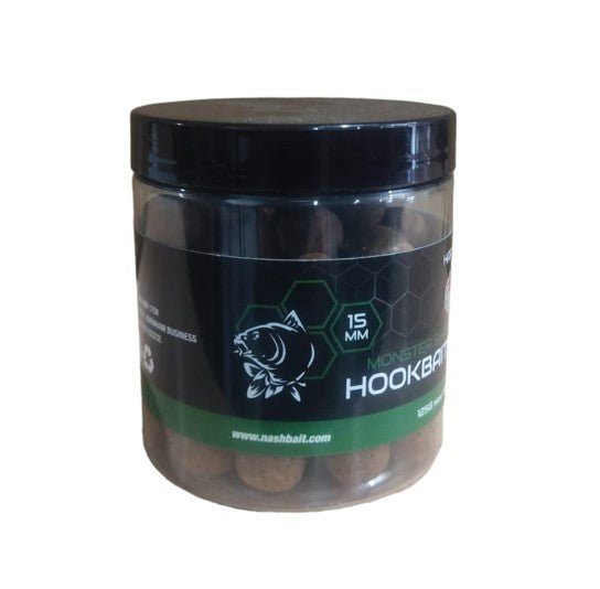 Gemerkte harde haakaas bus Nash instant actie hard haakaas in Kleur natuurlijk donkerbruin in 15 mm range maten Monster Shrimp. Speciaal voor het karpervissen.