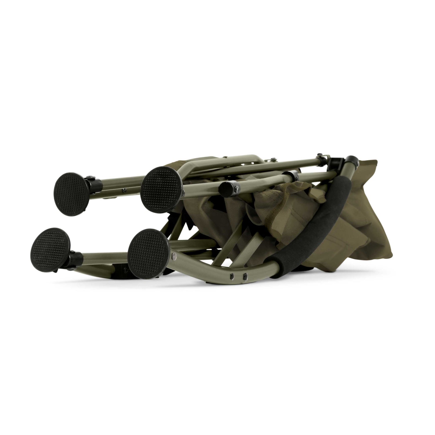Stoel van het merk Avid Carp model Revolve Laag op Kleur en stijl revolve, ideaal voor karpervissen.