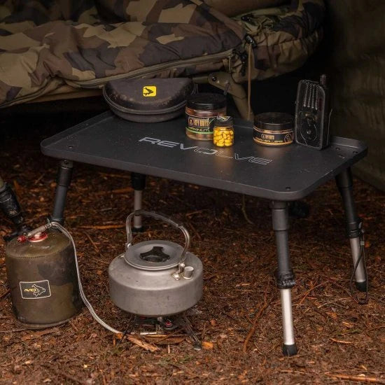 Merk tafel Avid Carp model Revolve Bivvy op Kleur zwartspeciaal voor karpervissen.