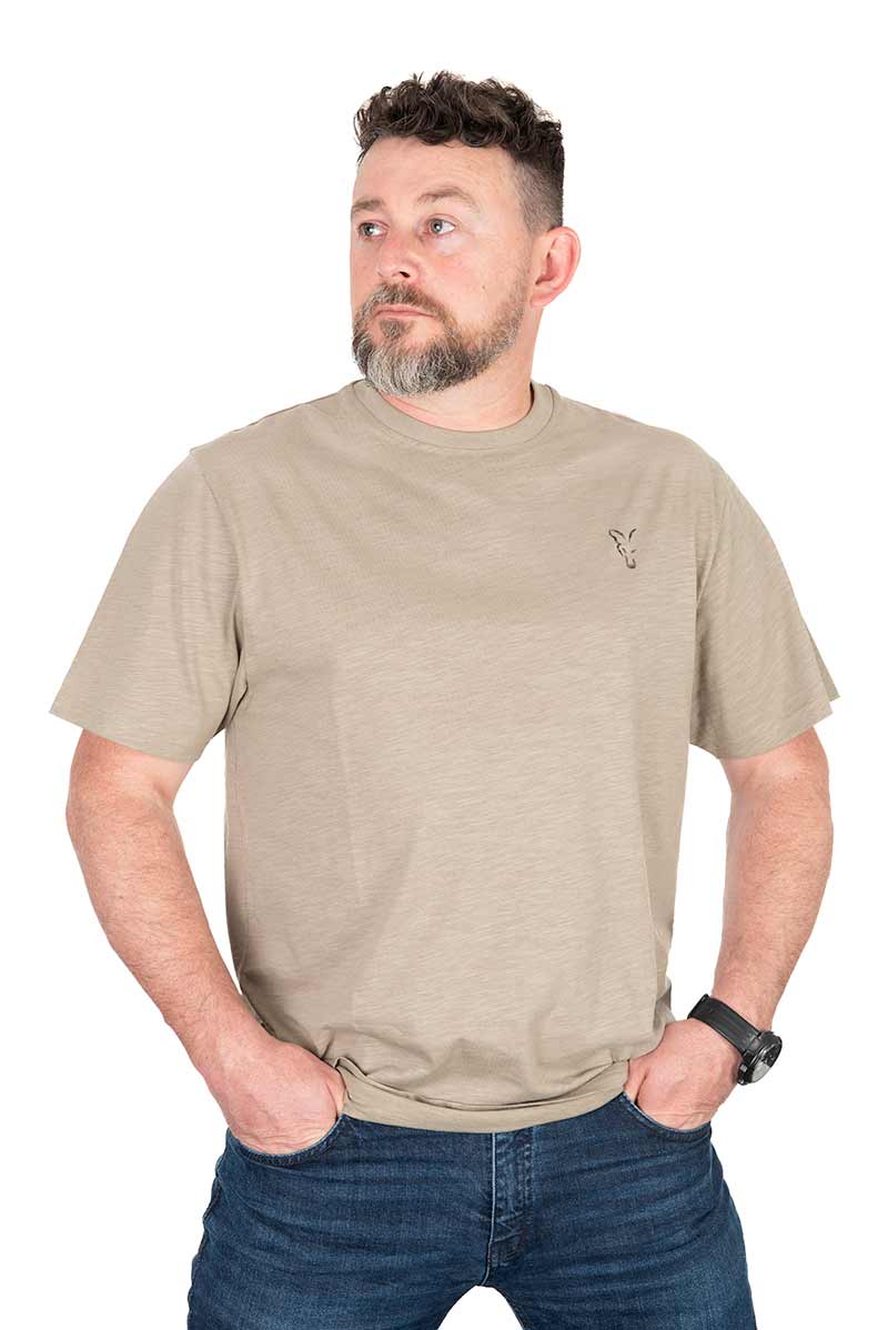 T-shirt van hoge kwaliteit van het merk Fox model LW bedrukte T op Kleur kakispeciaal voor karpervissen.