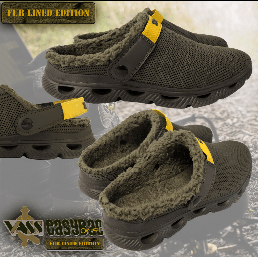 Visschoenen van het merk Vass model Easy-Bac op Kleur kaki, speciaal voor karpervissen.