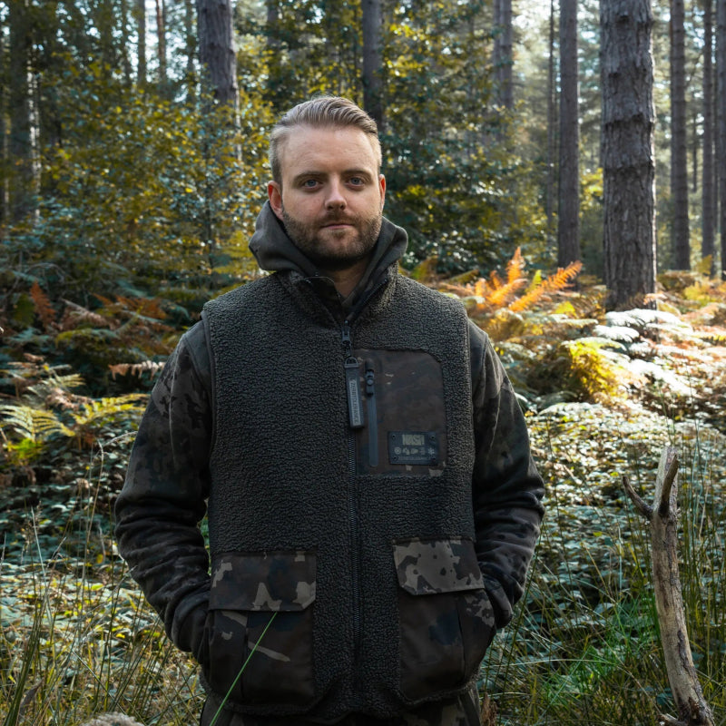 Gilet Regenjas mouwloos van het merk Nash model ZT Sherpa met ontwerp in Kleur camospeciaal voor het karpervissen.