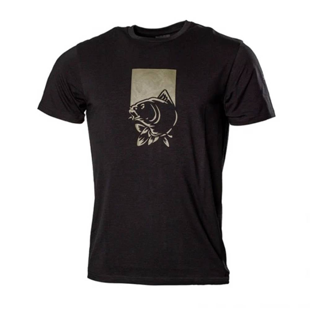 T-shirt van het merk Nash, model Make It Happen Vis Logo, met het karperlogo van het merk, ontworpen voor meer comfort tijdens je carpfishing-sessies.
