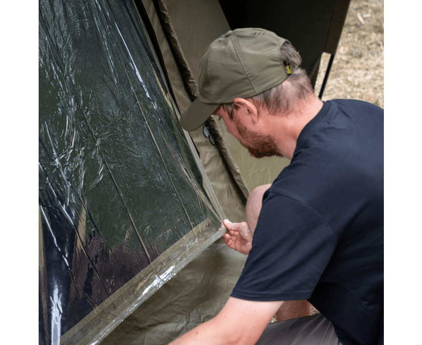 - De voorkant kan volledig worden opgerold voor een open bivvy, terwijl de tweewegbrievenbusdeur is voorzien van geïntegreerd gaas- en PVC-raam