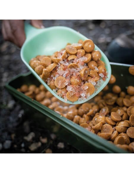 Grondschop op Kleur fluorent van het merk Ridge Monkey met technologie Nite Glo zodat gloeien in het donker zodat je hem 's nachts niet kwijtraakt. Hij is gemaakt van PVC en is ideaal voor het mengen van aas.