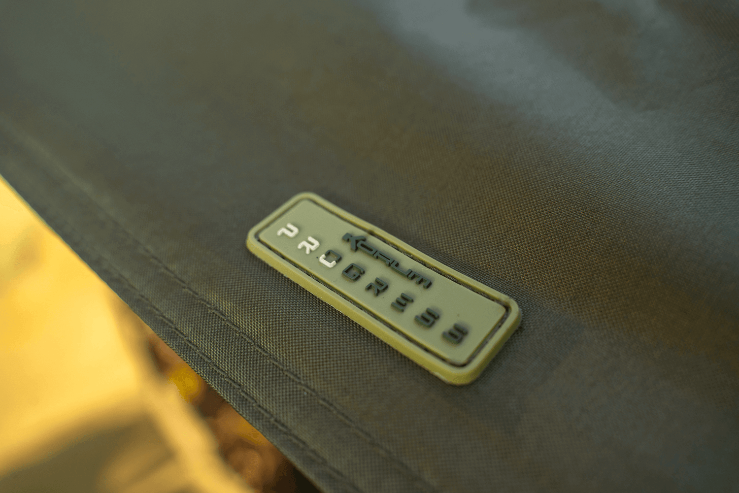 Merk paraplu Korum, model Vooruitgang grafiek, met ontwerp in Kleur groen, speciaal voor karpervissen.