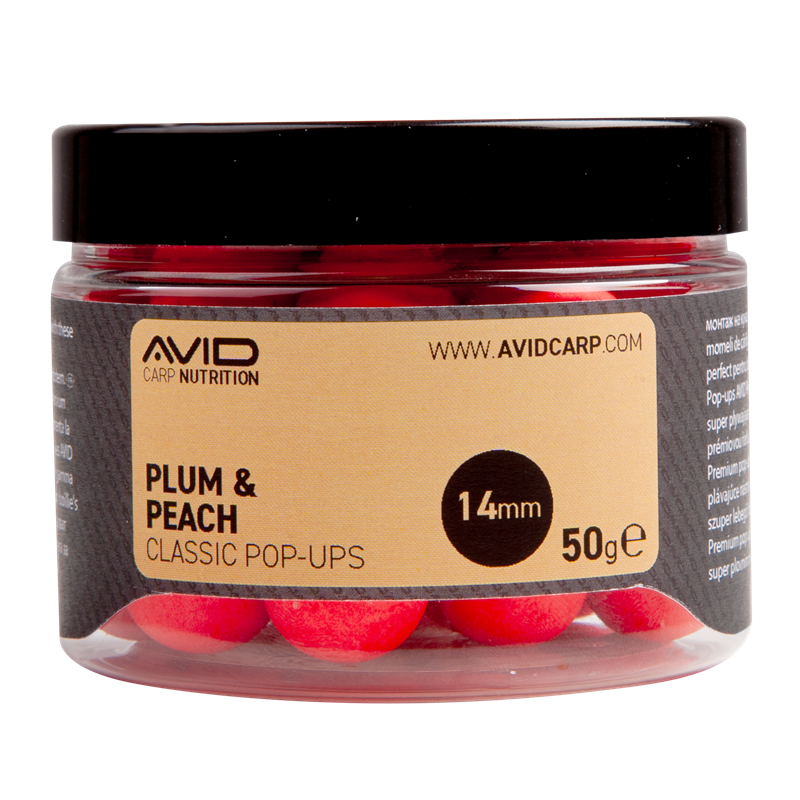 Pop Ups Merkdrijvers Avid Carp, assortiment Classic, smaak Pruim & Peachspeciaal voor karpervissen.