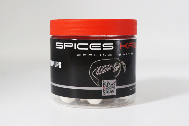 Pop Ups van het merk Trybion, bereik Ecoline, smaak Kruidige krill, vooral voor het karpervissen.