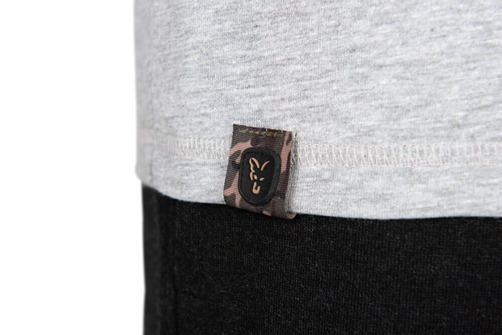 T-shirt van hoge kwaliteit van het merk Fox model Ltd LW Marl op Kleur grijs met de camouflagelogospeciaal voor het karpervissen.
