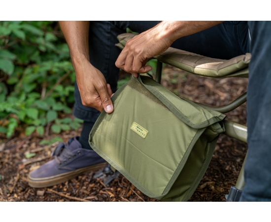 - Praktische oplossing voor het veilig opbergen van persoonlijke spullen tijdens het vissen vanuit je stoel.